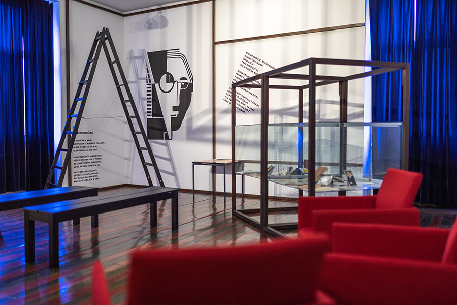 The memorial room is a constructivistically designed space that takes visitors on a literary journey. It is located in the building of the Sežana Adult Education Centre. Photo: Archive of the Municipality of Sežana