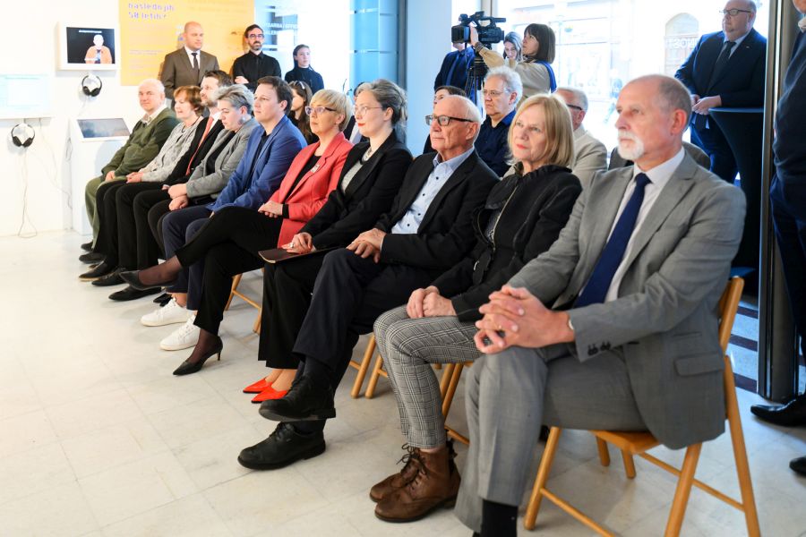 Under the honorary patronage of President Nataša Pirc Musar, the opening ceremony of the exhibition The Origin of the Future brought together the Rector of the University of Ljubljana and several generations of Slovenian AI researchers, from early pioneers to today’s leading experts.Photo: Katja Goljat