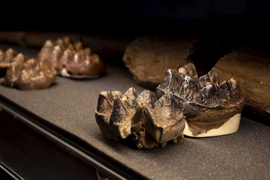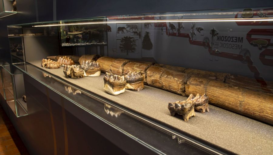 The collection displays three tusks, other teeth and parts of skeleton, while there are also some fossilized remains of fruits from the plants of that time which represent the flora. Photo: Tanja Verboten